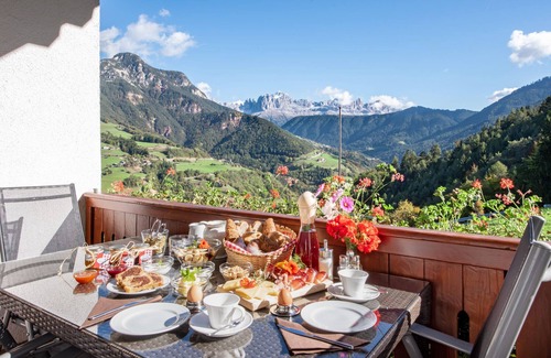The 75 m² "Rosengarten" apartment is located on Heiglerhof, a working dairy farm above Steinegg in the Eisack Valley—perfect for families and couples. Cows, calves, chickens, and cats make your stay an experience for all ages.