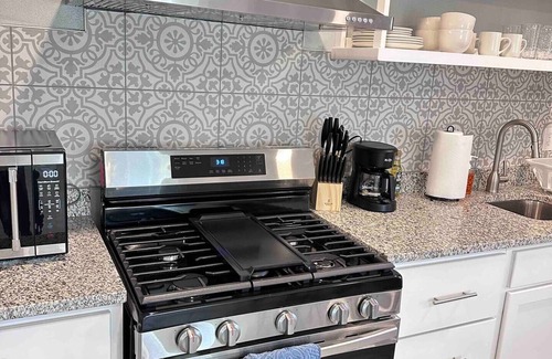 Discover our cozy split-level home: a serene retreat with a spacious basement living room featuring a 3-seat sofa, 58" 4K TV, and work desk. The main floor boasts a fully equipped kitchen with modern appliances and a 4-seater dining table. Sleep well in a bedroom with a queen-size bed and 12" memory foam mattress. The modern bathroom includes a bathtub for relaxing showers. Ideal for both relaxation and remote work, this home promises a comfortable stay. Welcome to your home away from home.