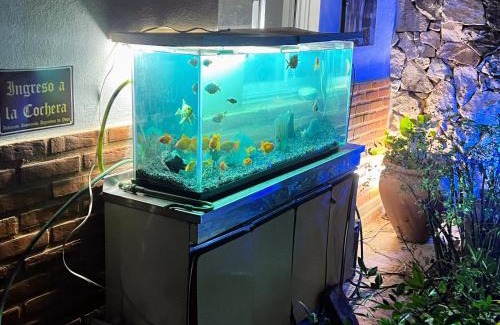 Offering a garden, Ashram Asociación Argentina de Yoga features accommodations in Mina Clavero. This property offers access to a balcony, table tennis, free private parking, and free Wifi. The vacation home provides an outdoor swimming pool, fitness room, and a 24-hour front desk. Accommodation for disabled guests is also available at the property. Providing a terrace and mountain views, the vacation home includes 1 bedroom, a living room, satellite flat-screen TV, an equipped kitchen, and 1 bathroom with a walk-in shower and a bidet. Featuring air conditioning, the vacation home offers Nintendo Wii, PS3, and a iPad. This vacation home is allergy-free and non-smoking. During warmer months, you can make use of the barbecue facilities and eat on the private patio. Guests can take advantage of yoga classes held on site. Sightseeing tours are available within a reachable distance. The vacation home also provides guests with outdoor fireplace and a picnic area for a day outdoors. Valle del Conlara Airport is 57 miles away, and the property offers a paid airport shuttle service.