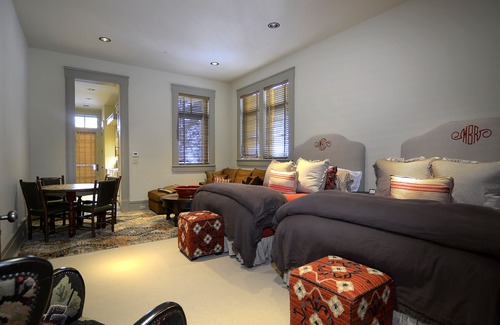 Master Bedroom: King bed, sitting area, desk, walk in closet, exercise room, private patio with views of Mount Hayden, en-suite bathroom with double vanities, tub and steam shower.
