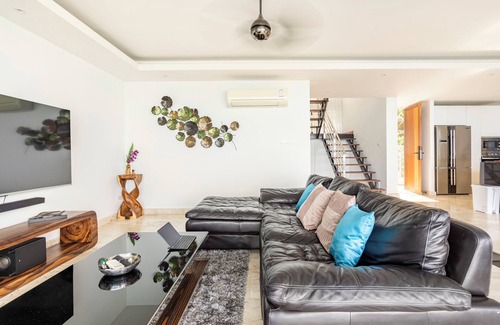 This 3 bedroom, 4 bathroom, 160 sqm villa spans over two levels with a private entry, terrace and pool and was built in a modern contemporary design. It is surrounded by a lush tropical garden and offers breathtaking views of the sea, the sunrise, and the beautiful Coral Cove.