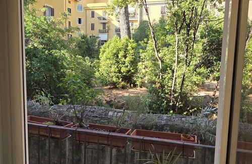 In front of the historic Porta Pia, the apartment is located within a silent and guarded residential context overlooking a green garden where Garibaldi camped with the troops before the Breccia.