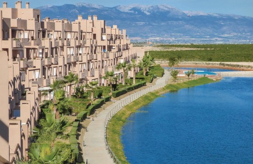 This beautiful vacation apartment is located on a small island in the well-known golf resort Condado de Alhama with two community pools. From the terrace you have an impressive view of the lake and the surrounding meadows and mountains. The resort has an outdoor fitness area, table tennis tables, a playground for the little guests and enough space for other sports like tennis, basketball or soccer.