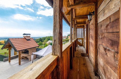 Look forward to your vacation in this special vacation home on three levels. The use of wood, brick and pleasant furnishings will make you feel completely at home and cozy with your family. Organize cooking evenings together or snuggle up on the sofa in the evening for entertaining films. From the rustic balcony or your terrace, you can enjoy the view of the countryside, sunbathe and prepare your evening meal on the brick barbecue.