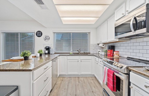 Welcome to your dream getaway! This stunning home has everything you need for a perfect vacation. Featuring 4 spacious bedrooms and 2 bathrooms, this remodeled house is loaded with comfort and style. You’ll love the modern kitchen with granite countertops, sleek white cabinets, and stainless steel appliances—perfect for whipping up a great meal during your stay.