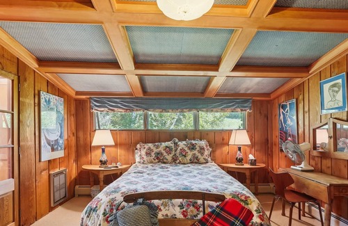 This home is a visual delight—homey country with warm barn board walls and bold patterned linens meld with urban artwork and playful design elements. Barrows Barn is a great home for families and friends to gather. Outside, a large deck spans the length of the house with several access points. An outdoor table placed under the shade of a large tree is ideal for dining al fresco. Beyond the deck, a large, mostly flat yard, is perfect for play and evenings around the firepit. At the far end is a pond—a lovely spot for morning coffee or tea!