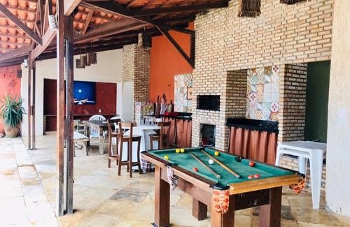 Beautiful house, spring, 300mts from Beach Park, two blocks from the sea, with 4 bedrooms and 3 suites, 1 reversible, three with air, large deck, pool, barbecue, oven and gas hob, freezer, garden area Green parking space for up to 10 cars, gourmet kitchen with utensils, 2 half baths, ventilated and airy all day, modern rustic architecture.