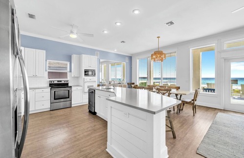 From the moment you arrive at Fishers, you will start a new vacation tradition of a lifetime! This magnificent, 3500 sq ft BEACH Front home is on Front Beach Road in the heart of Panama City Beach. Only 350 yards to Pier Park, it is the best seat in town on the 4th of July and New Year's when there are fireworks over the pier! Fishers features 6 bedrooms, 4 full baths and 2 half baths. There are 4 king beds, 3 queen beds, 4 twin beds, and a sleeper sofa- all bedrooms and the TWO living rooms have a Flat screen TV. This incredible home has been recently remodeled with new hardwood floors downstairs, ship lap in the entry, quartz counter tops in kitchen, new handicap accessible master bath on the main level, handicap accessible ramp on the right side of the house, updated appliances, and two full size refrigerators!