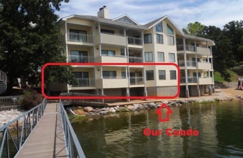 Relax and enjoy the lake from one of the best condo's around. Not only is our condo lakefront in a beautiful wide cove, it's also on the bottom floor in the building right next to the beach. Plus we have one of the complexes pools directly behind us. Unbelievably convenient for anyone to enjoy the beach area, the pool, or the docks to fish from or go on a boat ride.