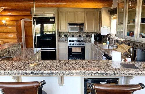 Situated in Big Bear's most desirable location, this is a 3000 sqft, 'Royal Canadian' designed full log home in upper Castle Glen Estates with gorgeous views of the mountains and the lake. A few minutes away from the ski resorts. The home has 4 bedrooms/3baths, a loft area, and 2 full decks to enjoy the views! Lovely open-floor plan living room and kitchen with high-end appliances. Tesla charger available by request at booking.