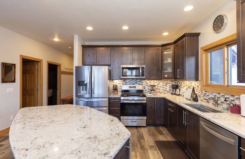 Bring the family, and some friends. This beautifully appointed home is PERFECT for vacationing with a small group. With 7 bedrooms, 4.5 baths, and 3 gathering areas spread across 4 levels, there are seemingly endless places to gather, find fun, or hide and take a nap. The main living area has 25' ceilings, fireplace, 65" ultra-high def TV, updated kitchen, and tons of glass overlooking absolutely unbelievable views of the Continental Divide, Lake Dillon, Peak 1, and Buffalo Mountain. The family room has a game/puzzle table, and a 55" ultra high def TV. The rec room has a beautiful pool table, 55" TV, even a little Pac-man machine, and kitchenette overlooking the mountains. The home has the most outstanding large entertaining deck with a built-in bar boasting the best views on the property, a propane fire-pit, varied seating for up to 12, and a unique circular staircase descending to lower level patio near the large private Jacuzzi. The upper level is a giant master en-suite with private balcony, soaking tub, steam walk-in shower, and sitting area. There is a second king en-suite on the lowest level. There are 3 other private Queen-bed rooms, and 2 bunk rooms: one with 3 twins (including a trundle), and one with a twin over a full, and a twin trundle. There is also a pack-and-play, and little kids bed for back-up kiddo sleeping arrangements. With a well-stocked kitchen, and highly functional lower level kitchenette, 8 flat-screen TVs in total, Wi-Fi, Cable TV, 2 washers/dryers on floors 1 and 3, a 2-car garage, and ample extra parking, you cannot beat the set-up, amenities, location, or views for the price. The soft touches such as luxury linens, spa-quality soaps and shampoos, embroidered robes in the non-bunk rooms, Belgian pillow chocolates, fully digital direct-home check-in, and a list of available Concierge Services, this home is geared to maximize your vacation experience. Come, stay with us at Grandview at Buffalo Mountain!