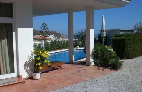 The cosy holiday home "Casa Blanka" is located in Lagos (40 km east of Malaga), a small fishing village on the coast between Torre del Mar and Torrox-Costa in Andalusia on the Costa del Sol, about 200 m from the sea - on an enclosed property with a total of three units. The apartment-house is near the beach and consists of a living room with 1 double bed (200x180cm), bathroom and equipped kitchen area and chair with a table and SAT-TV. You have the option of using the internet with your laptop through WLAN (no liability for reception limitations that may arise due to weather). Directly in front of the apartment you will find the garden, the terrace and the pool, which is heated with solar power. A stunning view of the sea is guaranteed through the elevated location of the apartment (about 30 m above sea level). ! Washing machine can be used. Bedsheets and towels are provided. Note: There are three nice dogs on the property.