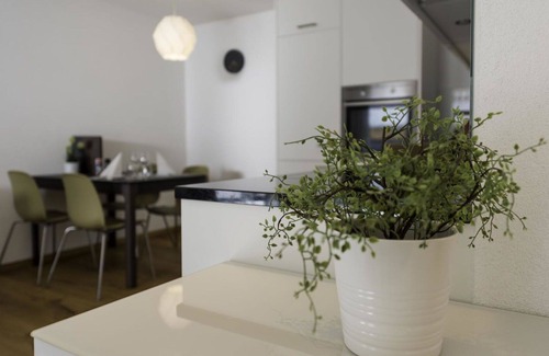The holiday flats offer various amenities to ensure a comfortable stay. Each apartment comes with a free parking space in front of the accommodation, a ski and bike room with its own lockable locker, and a laundry room (subject to a fee) for shared use in the basement of the house. You can enjoy free top high-speed WLAN (WiFi) during your stay. The apartments are equipped with a television, and pets are welcome upon request for an additional surcharge. The price includes all utilities (electricity, water, heating), parking, internet, and reception service. However, the final cleaning cost is not included in the rental price, and bed linen comes with an additional charge of CHF 30 per person.