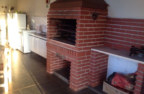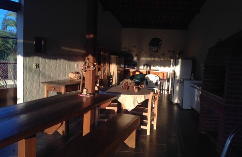 Large house with 06 large bedrooms, 2 suites, 5 bathrooms, 2 cable TV rooms, large kitchen and dining room, large barbecue area next to the pool with pizza ovens and firewood, pool 9m x 5m with space shallow for children (island), lawn to play football (and football pitch in the condo), TV room on the mezzanine, WiFi Internet and playground.