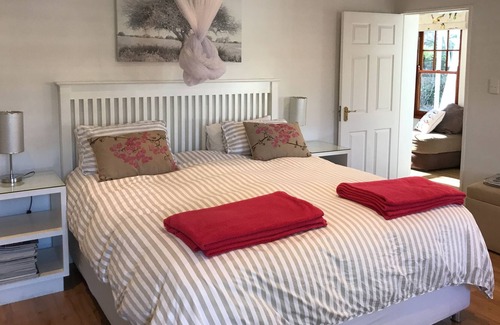Sunny, spacious, clean, conveniently located for everywhere, serviced garden cottage in large garden with mountain views, swimming pool and outside patios, in the heart of Newlands. Our neighbour is the Vineyard Hotel. Our little pocket is called Hiddingh. Beautiful walks, easy access to roads, but very quiet, sought-after suburb within 10 mins of the city attractions. Old suburb with tree-lined avenues. Two Golden Retrievers live on the property, which is located alongside the main house.