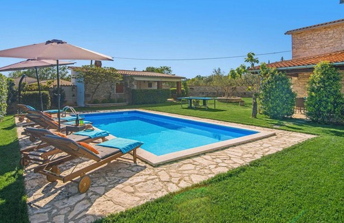 Are you dreaming of a peaceful vacation with family or friends in a typical Istrian vacation home where you will find everything you need for a perfect vacation? Villa Petric offers everything you need for a dream vacation. The charming stone Villa Petric is located on a beautiful green area. You will spend the sunny days of your vacation by the spacious pool surrounded by greenery. Outside, there is a wonderful covered terrace with a dining table where you can enjoy the warm summer evenings. For all barbecue fans, there is also a stone barbecue on the terrace where you can prepare your favorite dishes. But that's not all! In the garden of the villa you also have the opportunity to play billiards or table tennis with your friends.