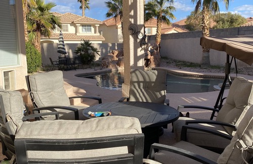 Beautiful master bedroom with pool | House in Las Vegas, NV