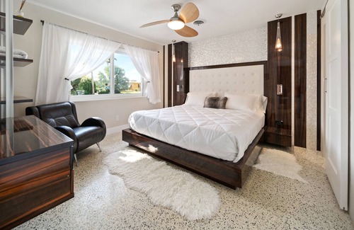 Luxurious renovated 4 bed 4 bath Single Family Home 7 mins/2.6 miles from beach. Minutes away from trendy downtown Ft. Lauderdale. Surrounded by restaurants & shopping. Pool w/ cabana bath, beautiful large patio w/ Nat Gas BBQ, lounge chairs, outside dining, large umbrella for shade & swing. Inside home you'll find everything new & modern with a nat gas cooktop, all tv's w/ apple. 4 sep. lawns for your pets. Safe & Quiet area. 2 Very Large Driveways. 1 room w/ ext entrance.