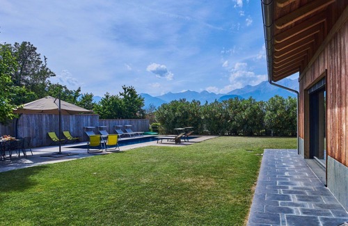 This large, modern villa "Woodhouse" offers a lavish vacation rental experience in Colico, Italy. Spanning three stories, the property boasts a private 500 m2 fenced yard with a lawn and an angular swimming pool (depth 150 cm, available seasonally from May 15 to September 30). Enjoy recreational amenities such as a fitness room, table football, and a storage room for bicycles. Parking is available on the premises for two cars, along with a single garage.