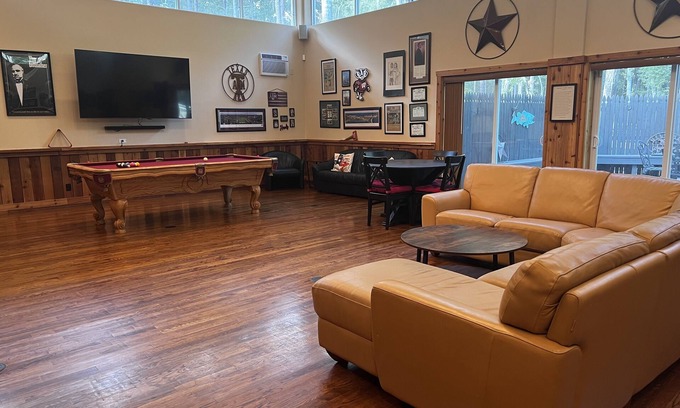 Gorgeous National Forest surrounds this home. Perfect for a relaxing weekend escape, family get togethers or corporate retreats. Party Barn with pool table, shuffle board, full bar, pool(seasonal) and lots of hiking and biking trails.