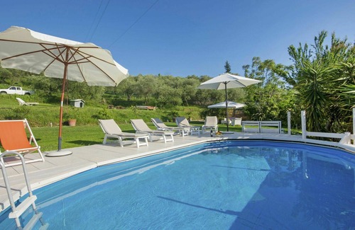 Nestled in Piano del Quercione, just 2 km from the charming town of Massarosa, Italy, "Olivo" offers a rustic and child-friendly holiday rental experience. The recently renovated, three-story detached house boasts a sunny, elevated position in a residential district and is conveniently located just 18 km from Lucca and 22 km from Forte dei Marmi. The property features a 10,000 m2 natural state area with a terraced garden, perfect for exploration. The private garden spans 500 m2 and includes a seasonal swimming pool (7 x 3 m, depth 120 cm) available from May through October, as well as a terrace (50 m2) with garden furniture, ideal for al fresco dining. Inside, you'll find amenities like internet access, central heating, a washing machine, and parking for up to two cars.