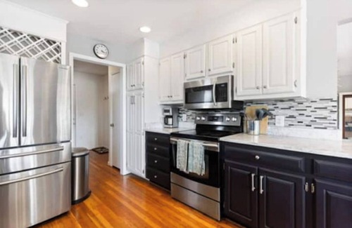 This enchanting house in Hampstead offers 3 cozy bedrooms - one with a king bed, one with a queen bed, and one with a twin bed. The 3 bathrooms are equipped with a jetted bathtub and a shower, perfect for unwinding after a day of exploring. With amenities like heating, AC, a hair dryer, and an iron, guests will feel right at home. A lovely retreat for your trip, this charming property is a great place to call homebase while you're away. We hope you enjoy your stay.