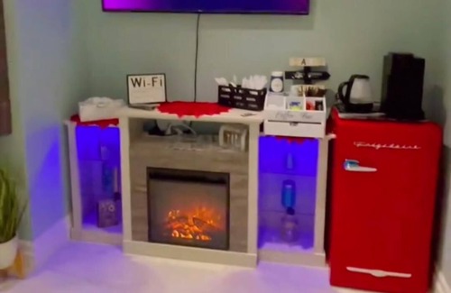 Smart Tv with Netflix.very large romantic and beautiful master bedroom with big walking closet include coffee station and mini fridge in the room with beautiful backgrounds lighting and fire place screen to add the perfect romantic moments and 56inch smart TV with Netflix and high speed internet and wifi.