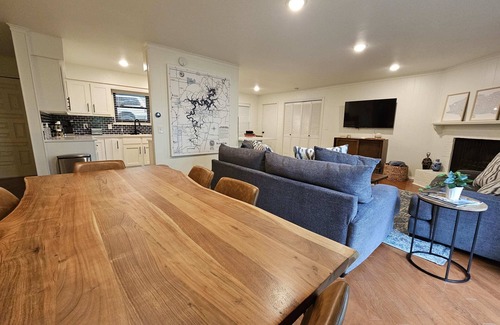 2400sqft 4 bedroom 3 bath house situated lakefront on Beaver Lake. There are 3 bedrooms with King beds and 1 Bedroom featuring 2 sets of twin over full bunks. The house is tastefully decorated with comfortable seating. This house has tons of deck space to accommodate and entertain up to 12 guests
