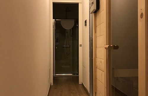 Quadruple room with private sauna and turkish bath, independent entrance, private bathroom. In the structure there are a large garden equipped with deck chairs and umbrellas, a bio swimming pool, a heated whirlpool on the roof of the structure, a panoramic terrace and a breakfast room. A free parking area is available to guests. Free Wifi throughout the hotel. The historic center and the train and bus station can be reached in 15 minutes on foot.