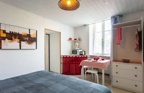 Bedroom with dining area +bathroom - View & Garden is located in Cabrerets. Bedroom with dining area +bathroom - View & Garden provides accommodation, featuring Spa, Internet, Security/Safety, among other amenities. This Apartment features Spa, Internet, Security/Safety, to make your stay a comfortable one.