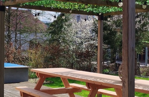Best-rates for the Flangebouche house starts from $428 per night with includes Spa, Fireplace/Heating, Barbecue/Outdoor Cooking, Child Friendly, Hot Tub, Internet, Pet Friendly, TV, Balcony/Terrace, Security/Safety, Bedding/Linens, Kitchen, Laundry, Parking with all other facilities. Casai.uk matches every traveler with their perfect accommodation, whether you are traveling with a group, friends, family, or pets.
