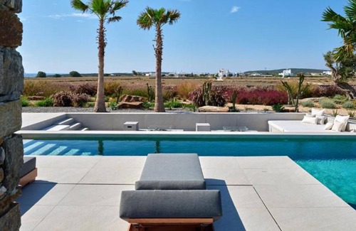 The property is a brand-new luxury 6-bedroom villa, overlooking the Aegean Sea and Santa Maria beach. It boasts a fine fusion of Greek architectural integrity and modern finishes with all the luxuries of a five-star hotel. Located Just a 6-minute drive from the cosmopolitan town of Naousa, this is just the right property to enjoy a lavish, private stay on fabulous Paros.