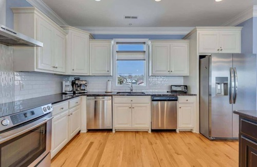 Every detail in Big Bird has been thoughtfully curated to elevate your experience. The fully stocked, custom kitchen is a chef’s dream, boasting two dishwashers, a glass cooktop stove, and high-end appliances like an espresso maker and waffle irons. Gather around two dining tables that seat 14 or enjoy casual meals at the kitchen bar with seating for six. The bright, open living room is perfect for family gatherings, featuring seating for up to 13, a flat-screen TV, and board games for entertainment. Upstairs, a wet bar and a ping pong table offer additional spaces for fun and relaxation.