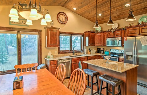 Outdoor adventure awaits when you make this stunning Lead vacation rental the site of your next Black Hills getaway! Featuring a beautiful cabin-feel interior, private fire pit, and community pool and clubhouse access, this 5-bedroom, 3-bath home makes a perfect destination for a fun trip with the family. Be sure to hit the slopes at nearby Terry Peak, tour the Black Hills Mining Museum, or explore iconic local hiking spots like Mickelson Trail or Bridal Veil Falls while in town!