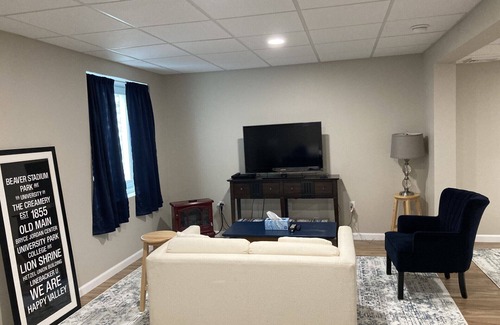Updated and clean townhome in an ideal location- perfect for a visit to Penn State and only a 10 minute drive to campus and Beaver Stadium. We are right next door to the award winning Mountain View Golf Course, with Tussey Mountain Ski Area just around the corner. Historic Boalsburg is a half mile away with several options for dining. A lovely nature walk winds through the neighborhood to an adjoining open space and playground. We offer accommodations for 8, in a comfortable 3 bedroom space, with an additional Queen bed in the lower level. The perfect spot to stay for whatever you plan to do in the Centre County region!