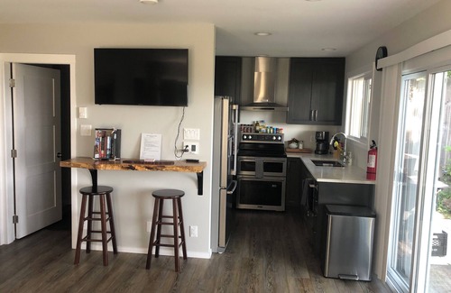 Bright 2 bdrm walk-on oceanfront cottage. This little oasis has a loaded kitchen with appliances, in-house laundry facilities, a pebble shower, and a cozy living room whose expansive views extend across the central Georgia Straight. The cottage opens onto a secluded, semi-private beach that offers views of Lasquiti, Texada, Hornby and Denman Island. Enjoy the sounds of the Salish Sea’s waves crashing upon the pebbled shore while enjoying sitting in a sauna barrel watching whales, sea lions, and porpoises swim by. Nightly sunsets are visible from your living room. Wake up in the morning, have a coffee on the beach or in front of the fire in the living room. Also put on your waders, and you’re steps away from some of the best fly fishing Vancouver Island has to offer (between two fish bearing local rivers that include Coho, Chinook, and Chum salmon). Bring your kayak or paddle board and get ready to explore!