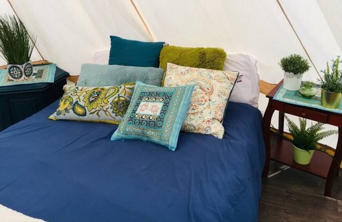 This idyllic bell tent boasts an amazing location near Hemer Provincial Park in Nanaimo, British Columbia, and is perfect for a unique camping experience in nature. Tent includes a kit with all cooking essentials, a cooler, propane stove, firepit and hammock. There is a communal hot shower on site, as well as a shared flush toilet.