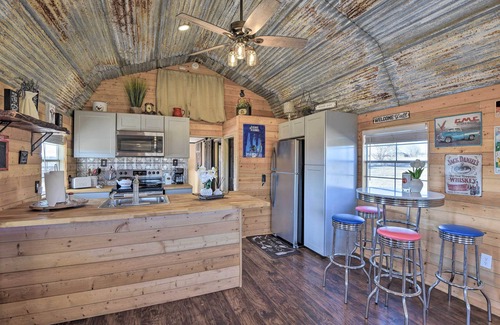 Yearning for a relaxing, off-the-grid getaway? Look no further than this charming 1-bedroom, 1-bath vacation rental in Boyd, Texas. Situated on a farm with unprecedented privacy and unparalleled views, this rustic cabin provides the perfect escape. When you’re not interacting with the farm animals, embrace your inner chef in the well-equipped kitchen or simply unwind on your furnished patio. If you’re looking to venture out, plan a visit to a nearby winery or take a day trip to Fort Worth!