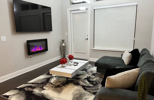 Kick back and relax in this calm, stylish space. Chandelier. Fireplace. Coffee bar. Snacks and beverages. Super clean. Located 6 min from the battery, all restaurants, entertainment, and plenty of shopping near by.