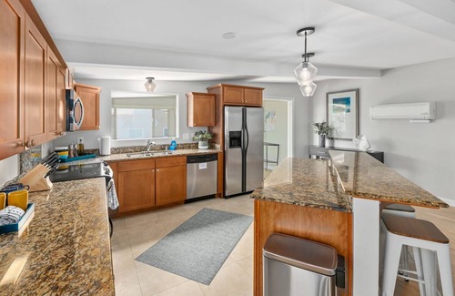 Relax with the whole family at this spacious condo in Mission Beach! This unit is steps from the ocean/boardwalk, and close to tons of shopping, restaurants, and bars. If you are looking for a place where you can walk everywhere- you have found it! With fresh, new decor, a fully equipped kitchen for home-cooked meals, A/C, speedy WIFI, smart TVs, and two parking places (for smaller cars only), this home is sure to give your friends and family a perfect beach getaway!