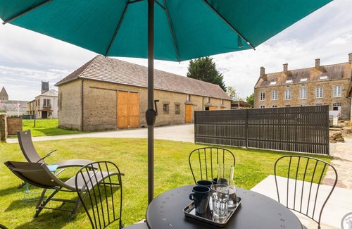 Detached house. Living room with pellet stove (TV, Wi-Fi), open-plan kitchen (induction hob, oven, dishwasher, fridge, microwave). Laundry room (washing machine) with separate toilet. Upstairs, bedroom 1 (1 bed [hidden]x[hidden] + 1 bed 90x[hidden] with private bathroom, separate toilet and on the other side of the suspended walkway, bedroom 2 (bed [hidden]x[hidden] with private shower room. Baby equipment on request. Heating by pellet stove included. Sheets provided and beds made on arrival. Towels provided. Cleaning service included. Private unfenced garden. 2 private terraces. Garden furniture. Barbecue. Parking. Possibility of horse boxing (including meadow, water and fodder) in the extension of the gîte. for an additional charge, on request from the owners. Having fallen under the spell of this imposing residence, once the farmhouse of the neighboring castle, Vincent and his wife carefully designed this comfortable, contemporary-style cottage. They emphasized the spacious living room and let in plenty of light. Thus, the kitchen, in a pretty midnight blue hue, appears larger and allows you to take advantage of the beautiful stone wall. The walkway overlooking the living room leads to two beautiful, bright bedrooms, each with a private bathroom, ensuring perfect privacy for two couples, for example. The house has two terraces: one on the southeast side to enjoy the sun and the shared courtyard, and the other on the opposite side, offering a pleasant view of the meadows and the old castle driveway with its century-old oak trees. Just [hidden]m from the greenway, you can go hiking to explore Carentan or Mont Castre, or even go horseback riding, since the cottage is equipped with a private stable for your horse.