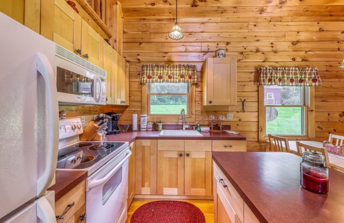 The interior decor with wooden touches throughout the home gives that special country vibe you and your group have been looking for. Kick back and relax in the inviting living room area and spend your nights playing one of the many board games available or watching TV. Log Cabin Escape features a jetted tub, a firepit, and an inviting outdoor dining area on your private, large lawn.
