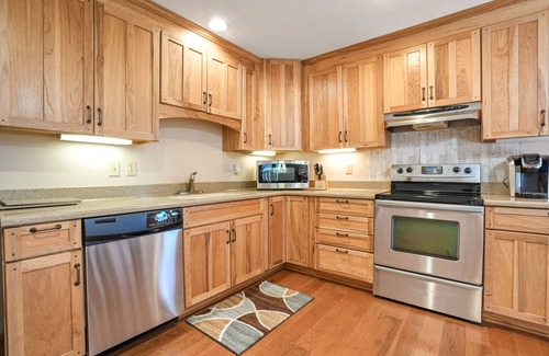 Buck Run has room for everyone with 5 bedrooms and 3 full bathrooms. This cabin sleeps up to 12 guests with plenty of areas to rest and relax! An upstairs living room and a huge downstairs entertainment room with pool table, sectional and large flat screen TV. This property is handicap accessible with a ramp, full bath and 48” hallways. Outside amenities include onsite parking, hot tub, fire pit, and grill! Must be 25 years or older to rent. AWD/4WD recommended in all seasons. Book Buck Run now!