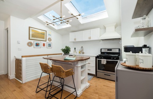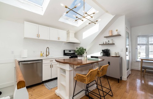 Welcome to C by the Sea, our stunning penthouse apartment located in the heart of Gloucester, MA. This beautifully renovated 1 bedroom, 1 bathroom top floor unit boasts breathtaking views of the Gloucester Harbor and Ten Pound Island and features stunning skylight windows, which flood the space with natural light. C by the Sea is located in a charming historic building, built in 1865, sleeps up to 4 people, and is just steps away from all that Gloucester has to offer.