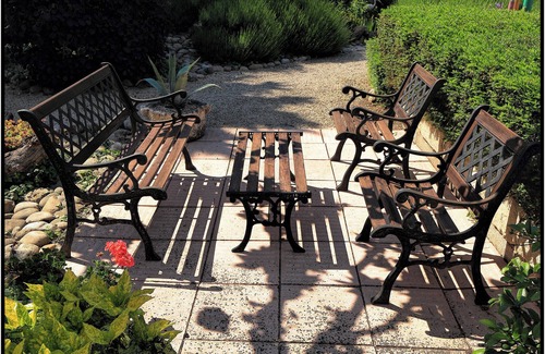 LE CABANON (17m2) is just 1 of our 7 fully self catering Gites here at "Mas Saint Antoine", this 17thC renovated farmhouse & converted outbuildings that make up the 7 gites is set in 2/3rds of an acre amidst open fields & orchards. Being on the main road between Avignon and St-Remy we are ideally situated for exploring all the best that Provence has to offer with no greater drive than 60mins to see it all. Our grounds have been fully landscaped into various garden themes and include a 12 x 6m swimming pool, summer house, a pond with waterfall, 300 year old olive trees and several secluded seating areas dotted around the gardens.