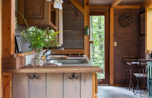 Hot tub is year-round and shared with guests from the other listings on the property. Outdoor shower is seasonal May through October, but tiny house does have a private bathroom with hot shower and toilet.