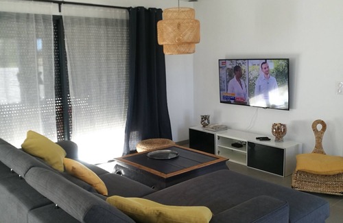 Cairanne: Modern villa with swimming pool is located in Cairanne. Cairanne: Modern villa with swimming pool provides accommodation, featuring Security/Safety, Fireplace/Heating, Internet, among other amenities. This Villa features Security/Safety, Fireplace/Heating, Internet, to make your stay a comfortable one.