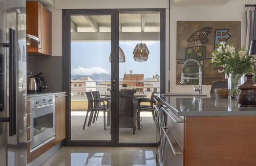 Welcome to your next dream vacation destination! This spectacular penthouse, located in the heart of Puerto de Pollensa, offers an incomparable experience with views of the majestic mountains and a partial view of the Mediterranean Sea. Located just a short walk from the charming town square, you'll have easy access to the beach, restaurants and shops.The penthouse has two double bedrooms, both with double beds and en-suite bathrooms with a bathtub, offering a private and comfortable space to rest. A third double bedroom is equipped with two single beds and an en-suite toilet with shower, ideal for friends or children. In addition, there is a room with a single bed, perfect for an extra guest or a child. The attic also has an additional toilet for added convenience.The kitchen has a large central island and is fully equipped with modern appliances, providing everything needed to prepare home-cooked meals. The living room, filled with natural light thanks to the large windows, is the perfect space to relax after a day of exploring the Port of Pollensa.The private terraces are a highlight: the front terrace offers stunning mountain views and is ideal for enjoying a coffee in the morning or a drink in the evening. The interior terrace, with partial sea view, is equipped with elegant chill out furniture and is the perfect place to watch the sunset or prepare a barbecue with friends or family.Enjoy the large communal pool and large common terrace, perfect for cooling off and socializing with other guests. In addition, although you can easily reach all the sites on foot, the apartment has an underground parking space.This penthouse not only offers all modern facilities but also a perfect location to enjoy an unforgettable vacation in Puerto de Pollensa. Book now and start planning your dream getaway!Registration number: ETVPL/13990