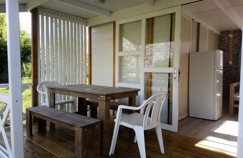 Accommodation: Cottage 30m2, 3 bedrooms, 6 people- 1 bedroom with bed 140 x 190 cm- 1 bedroom with 120 x 190 cm bed- 1 bedroom with 2 bunk beds of 80 x 190 cm- Lounge corner- Open kitchen with dining area- Fully equipped kitchen: fridge top table, microwave, coffee maker.- A bathroom with separate toilet- Terrace covered wood + garden furniture
