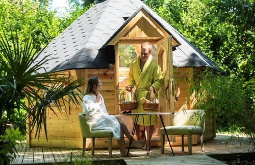 Accommodation: Enjoy an unusual night between nature and spa near Chantilly... Stay in a wooden bubble with star views for an exceptional night under the stars, in the middle of nature?. Will you sleep under the trees, sheltered from eyes in a real cocoon with your favorite duo? Amenities: The Wooden Bull includes a double bed and a small table with its chairs, a spa and sauna. At your disposal: Nespresso coffee machine, kettle, mugs, glasses, coffee taps, tea, water and minibar. But also:? A Bluetooth speaker, toilet linen, bathrobes, a bath set (shower soap and shampoo). For a romantic night, enjoy our outdoors with a double hammock, a brasero and its logs in your terrace to warm your evening! The bubble has a private bathroom with toilet? With the option "reconnection & heritage", enjoy a dinner for two in your bubble! We only wait for you to enjoy this memorable stay!?